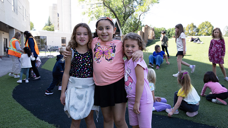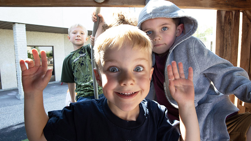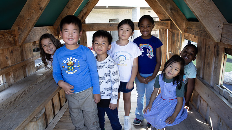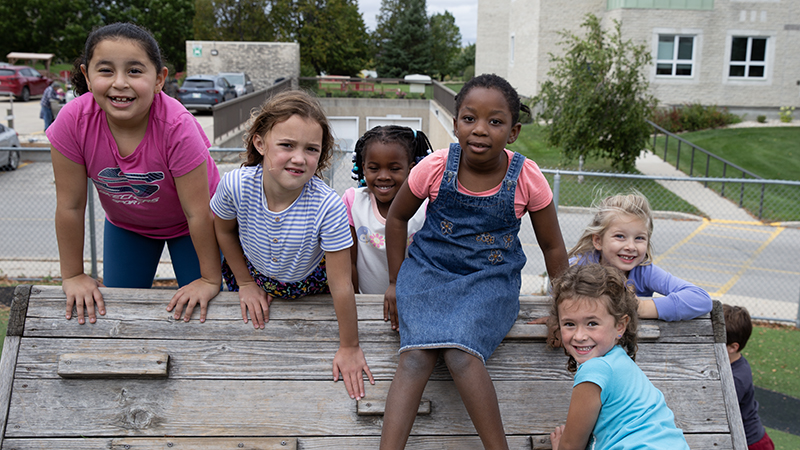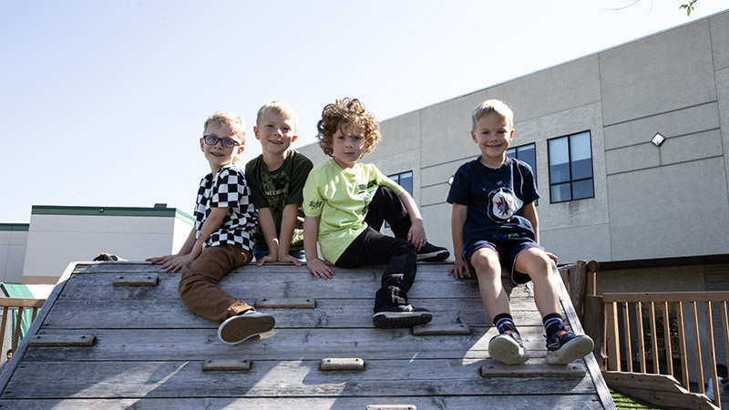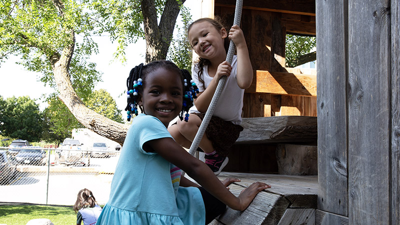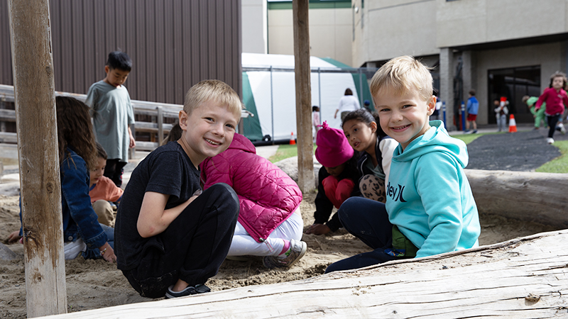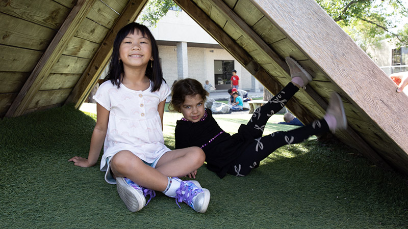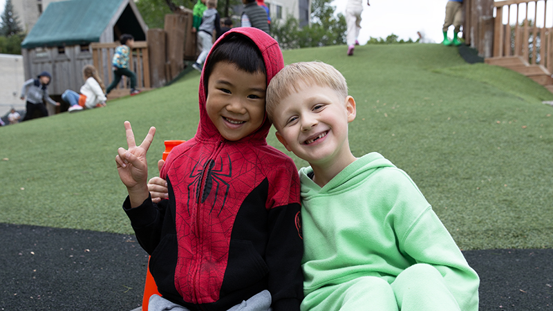 Laughter and happy chatter can be heard as students navigate the many fun options available to them. From racing up and down the hill and rope climbing, to playing in the fort and digging in the sand, they are delighting in every moment. The Playscape features a variety of structures and a popular tunnel that inspires endless creativity and fun.