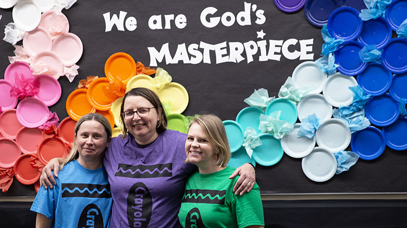 Alumna Mabel Harrington ’24 volunteered her creative talents and helped with the bulletin boards.