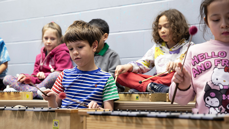 Through the use of simple melodies, hymns and folk songs, Early Years music teacher Brenda Johnson helps every student play a part. Our Grade 1-4 students enjoy the Orff instruments in the music room and also have opportunities to perform in large concert settings.
