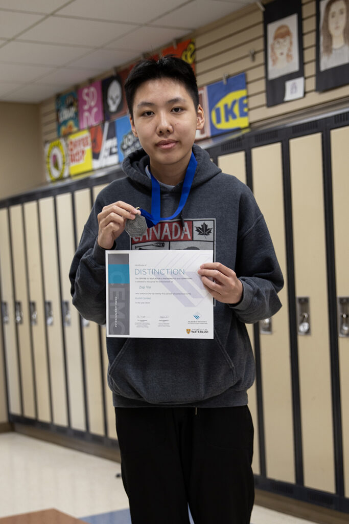 Congratulations to Grade 11 student Frank Y! He tied for first place in the Grade 12 math contest in the province.