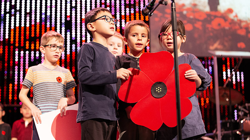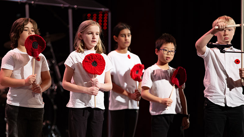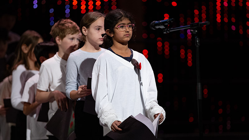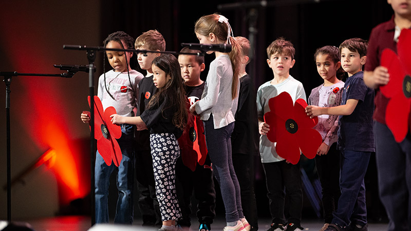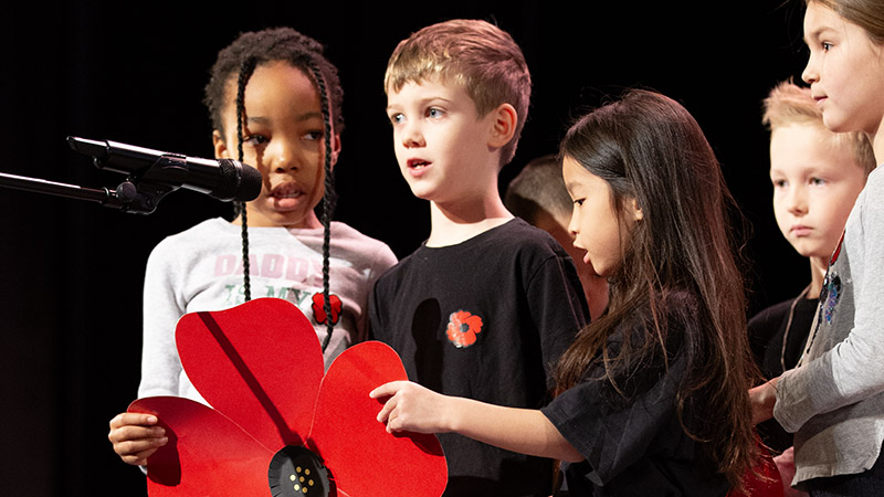 Student Council Co-Presidents Noa D. and Cade F. did a great job of welcoming our community and guiding the service throughout the morning. Senior Years student Elswidih B. led our community in “O Canada” and Henry H. performed “Last Post” and “Reveille”, bookending a collective Moment of Silence.