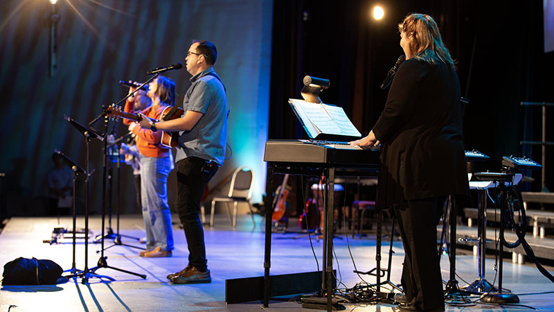 Our Kindergarten to Grade 12 community gathered for Worship Wednesday on October 16. We sang our school song “Because He Loves Us”, participated in corporate prayer, read scripture together, lifted our voices in praise, and heard from LCS parent and musician Osvaldo Ferraz about nurturing a heart of worship.